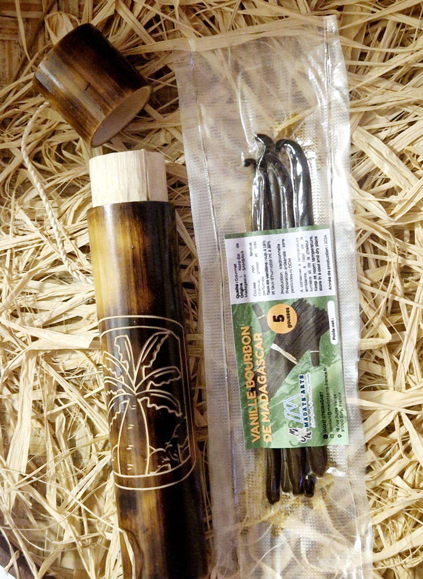 Tube artisanale en bambou et 5 gousses de Vanille de Madagascar 16-18cm /Collection VAVASAHA