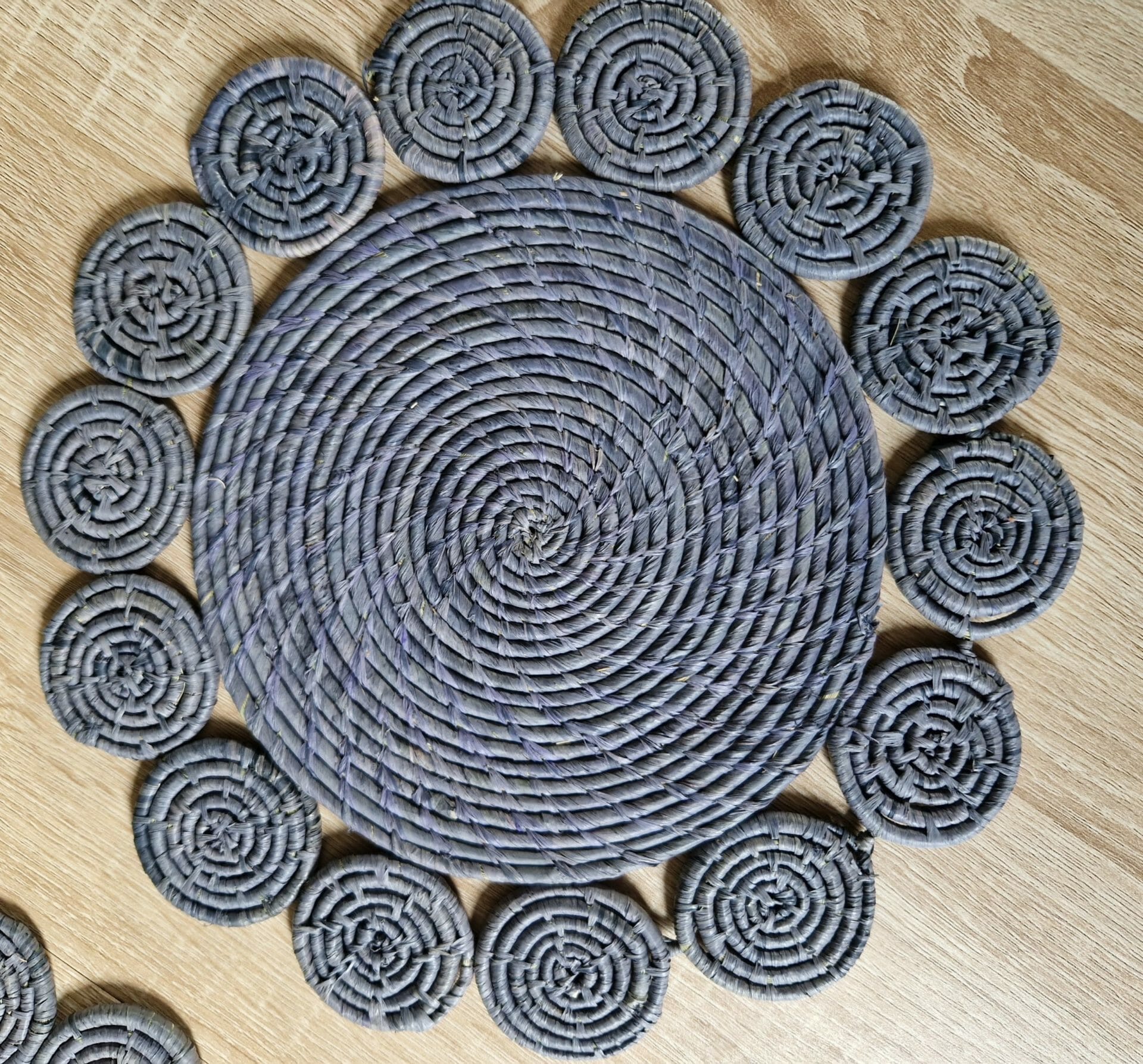 6 sets de table en raphia tissé façon macramé fait main bleu