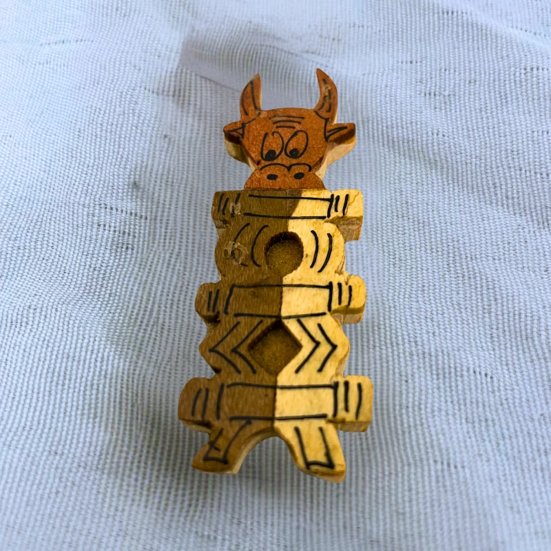 Aimant de réfrigérateur en bois – Tête de zébu style Aloalo 🐂✨