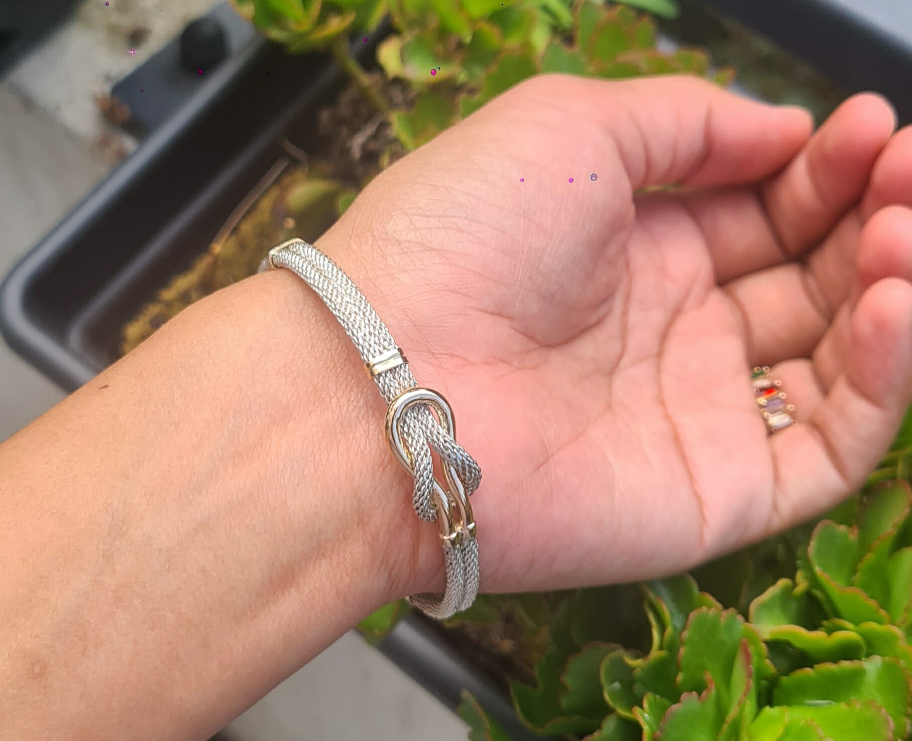 Bracelet câble nœud en Argent 925 et Or 18K Femme/Homme Artisanal 16G