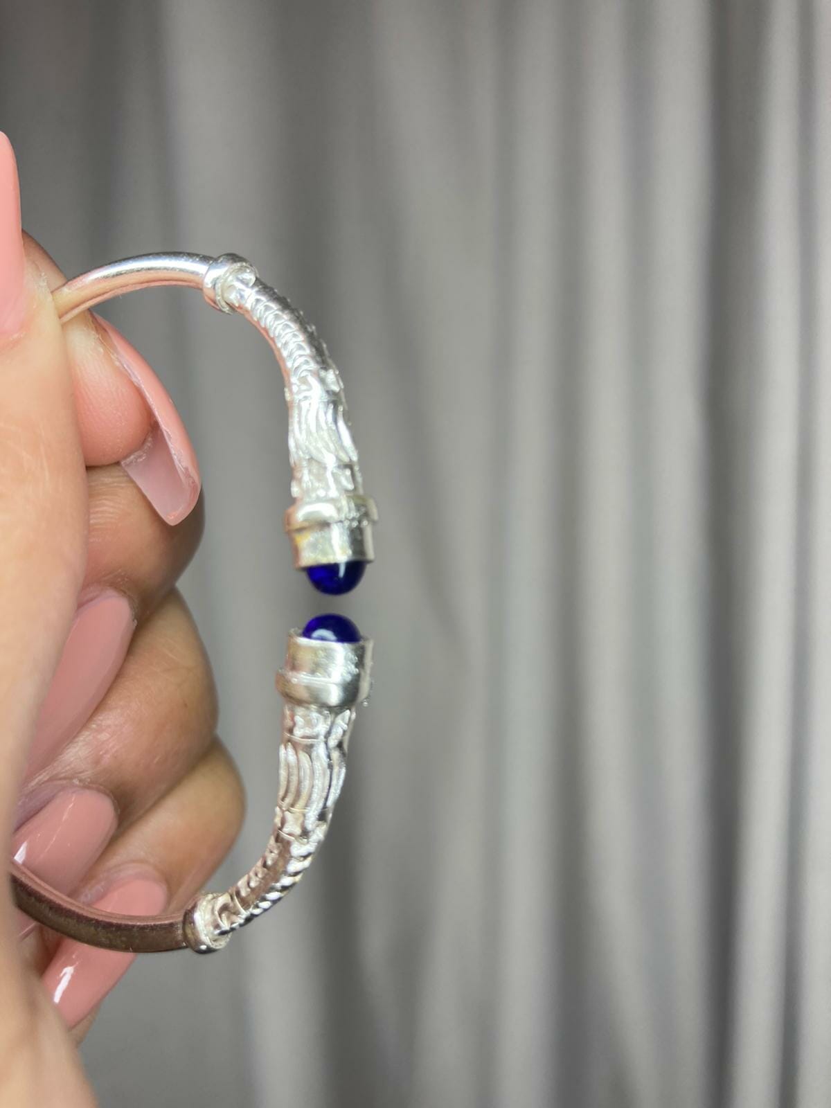 Ce magnifique bracelet est fabriqué avec de l’Argent et des pierres précieuse, il est démarqué par sa finition originale de tête de zébu serti par des pierres précieuse cisèle orné de cabochon de pierre précieuse ( grenat, saphir bleu) . Cerise sur le gâteau il est ajustable et mixte.