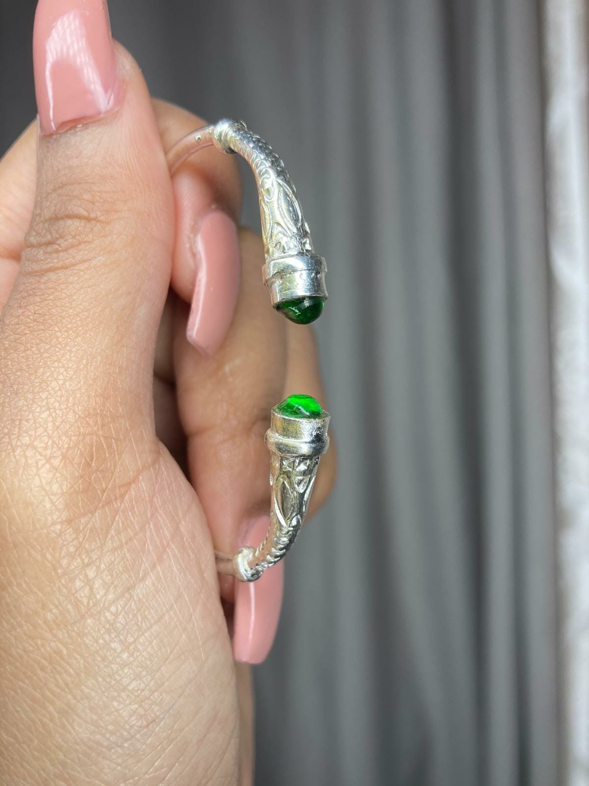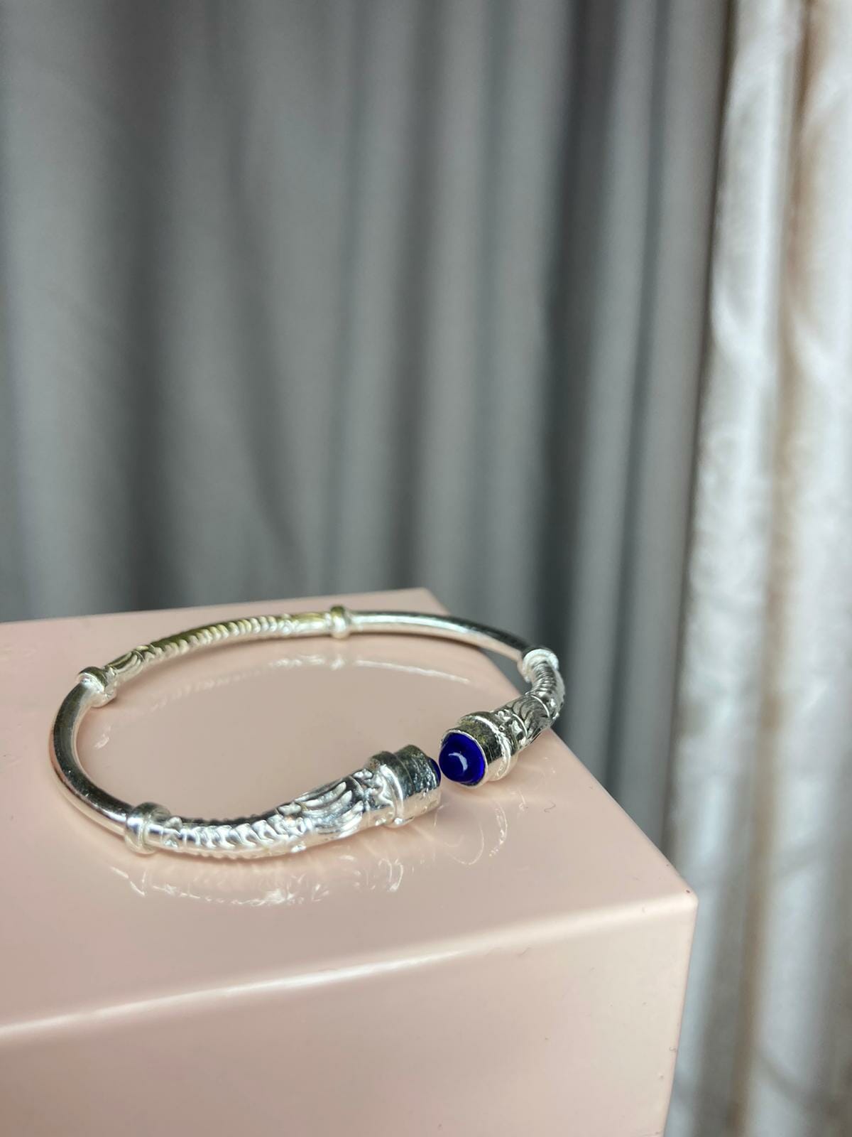 Ce magnifique bracelet pour enfant est fabriqué avec de l’Argent, il est démarqué par sa finition originale cisèle assez épais orné de deux cabochons en zircon. Cerise sur le gâteau il est ajustable et mixte.