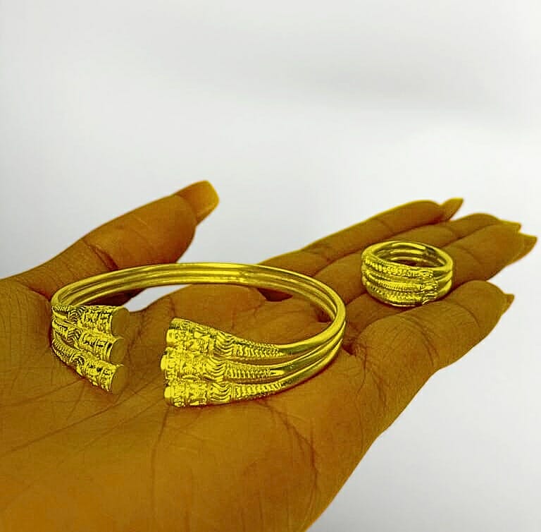 Ce magnifique ensemble bague et bracelet est fabriqué avec de l’Argent 100%, il est démarqué par sa finition de triple vangovango qui forme un seul modèle avec des motifs ethnique . Cerise sur le gâteau il est ajustable et pour les Femmes .