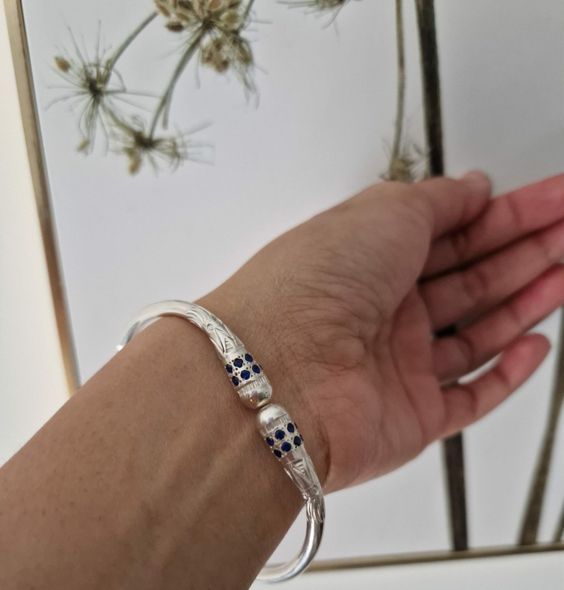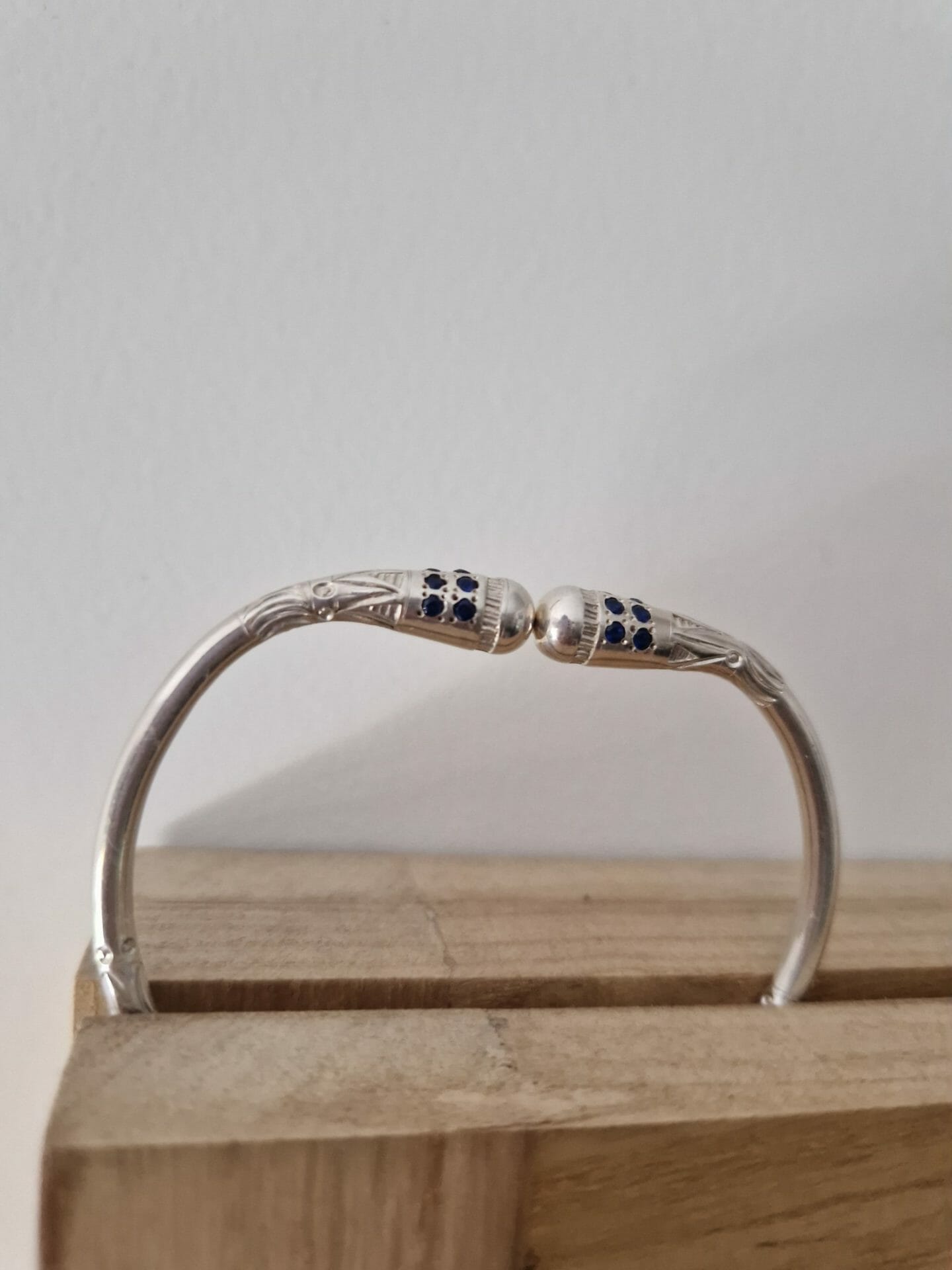 Jonc vangovango bout rond en argent 925 serti de zirconium bleu artisanal pour Homme 25G