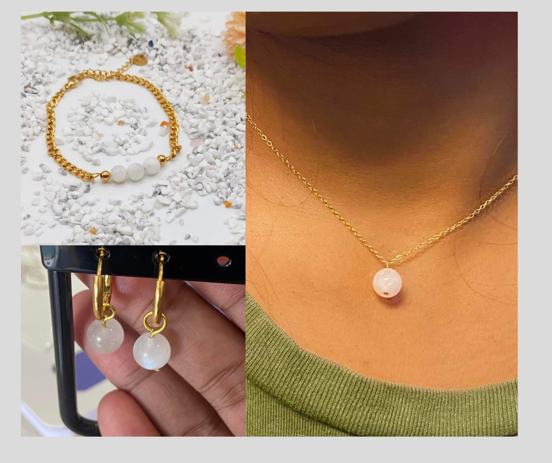 Parure Sélénite blanche 🤍 collier, bracelet, boucles d’oreilles/ en pierre naturelle / Madagascar