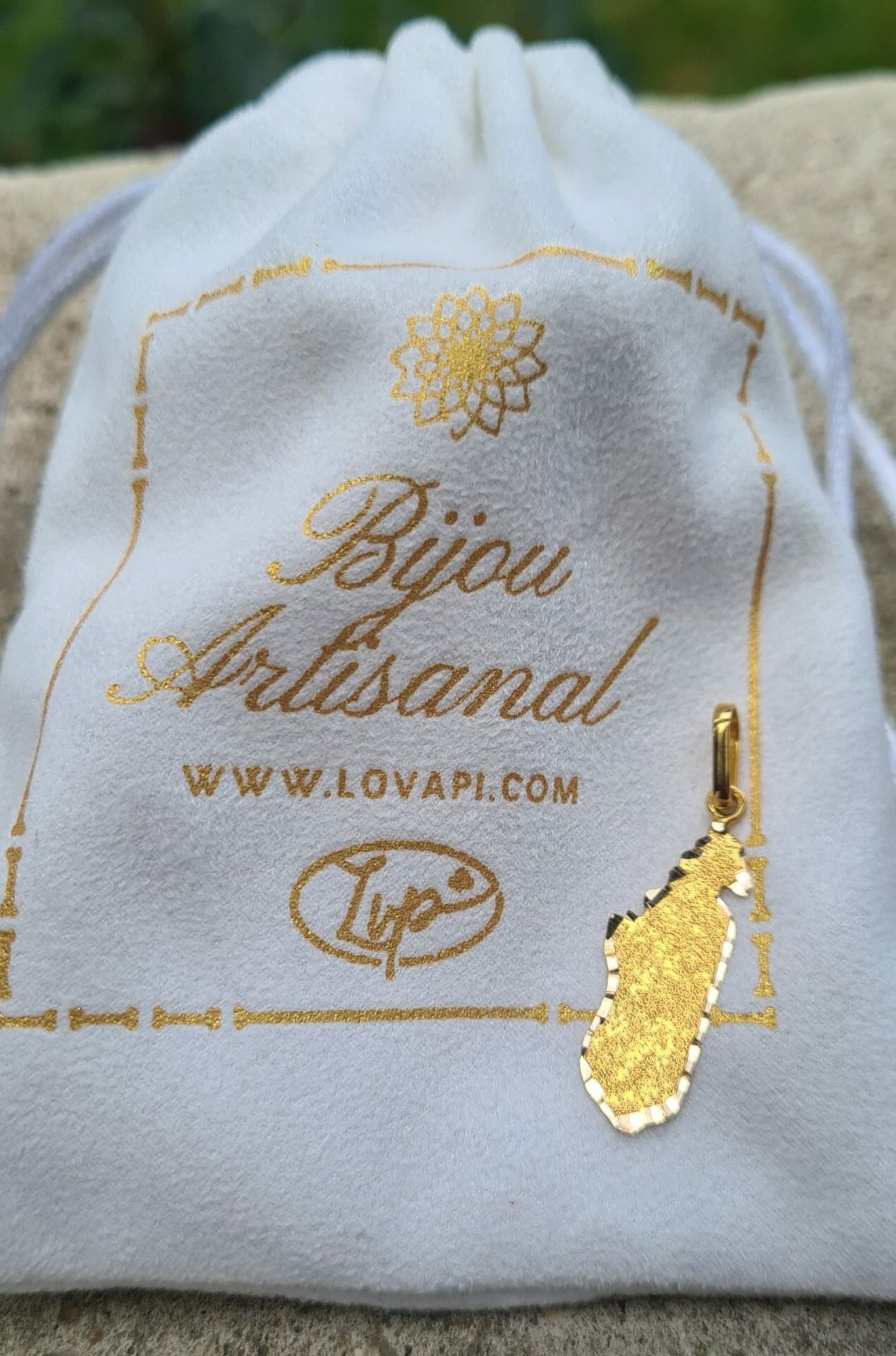 Pendentif Madagascar graine de sable en Or 18K 100% artisanal