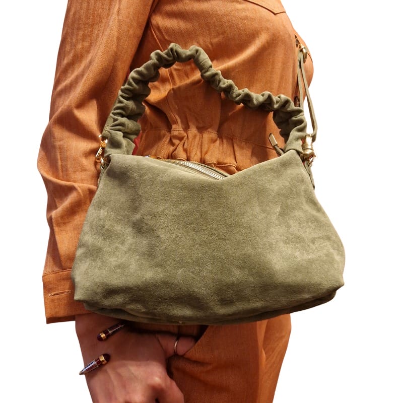 Sac effet daim avec un fermoir doré (100% Cuir Italien)