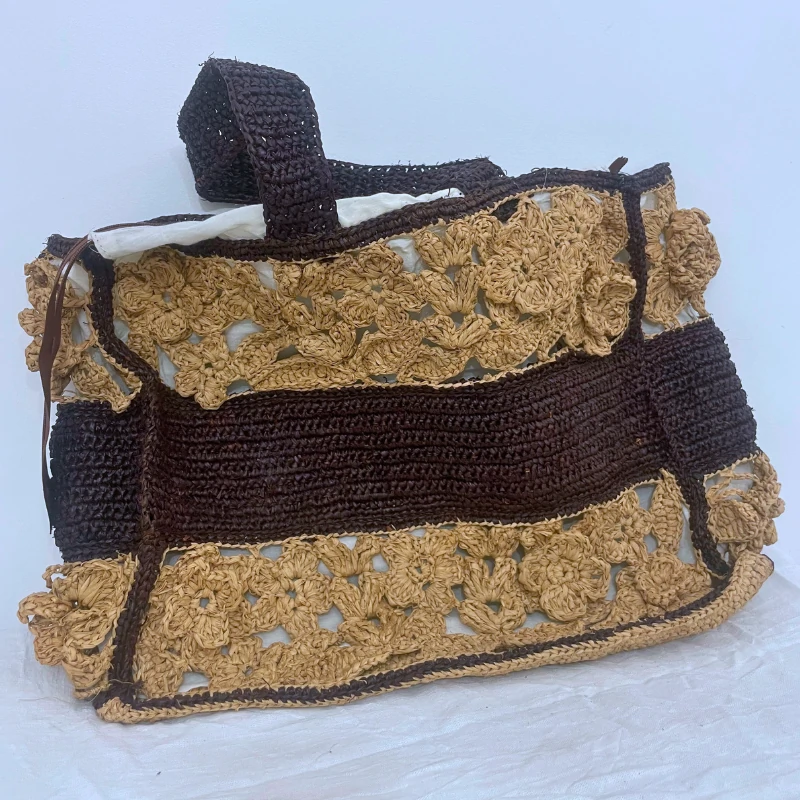 Adoptez ce cabas artisanal malgach, alliant charme bohème et utilité, pour sublimer votre quotidien avec authenticité et style. 🌺