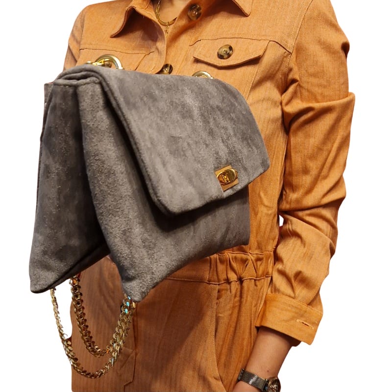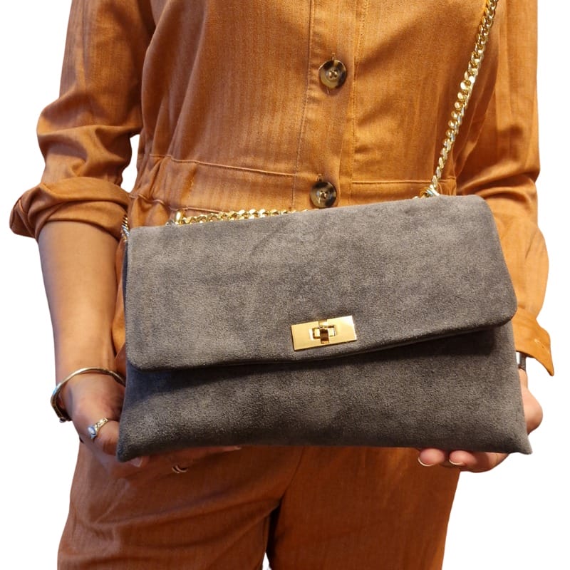 Sac effet daim avec un fermoir doré (100% Cuir Italien)