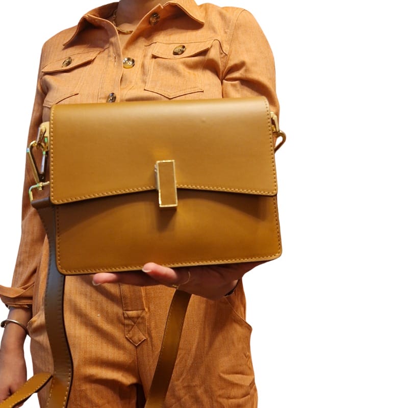 Ses finitions marron profond et sa silhouette épurée en font un accessoire intemporel. La bandoulière ajustable et amovible offre une flexibilité d’utilisation, vous permettant de le porter à la main ou en bandoulière, selon vos envies.