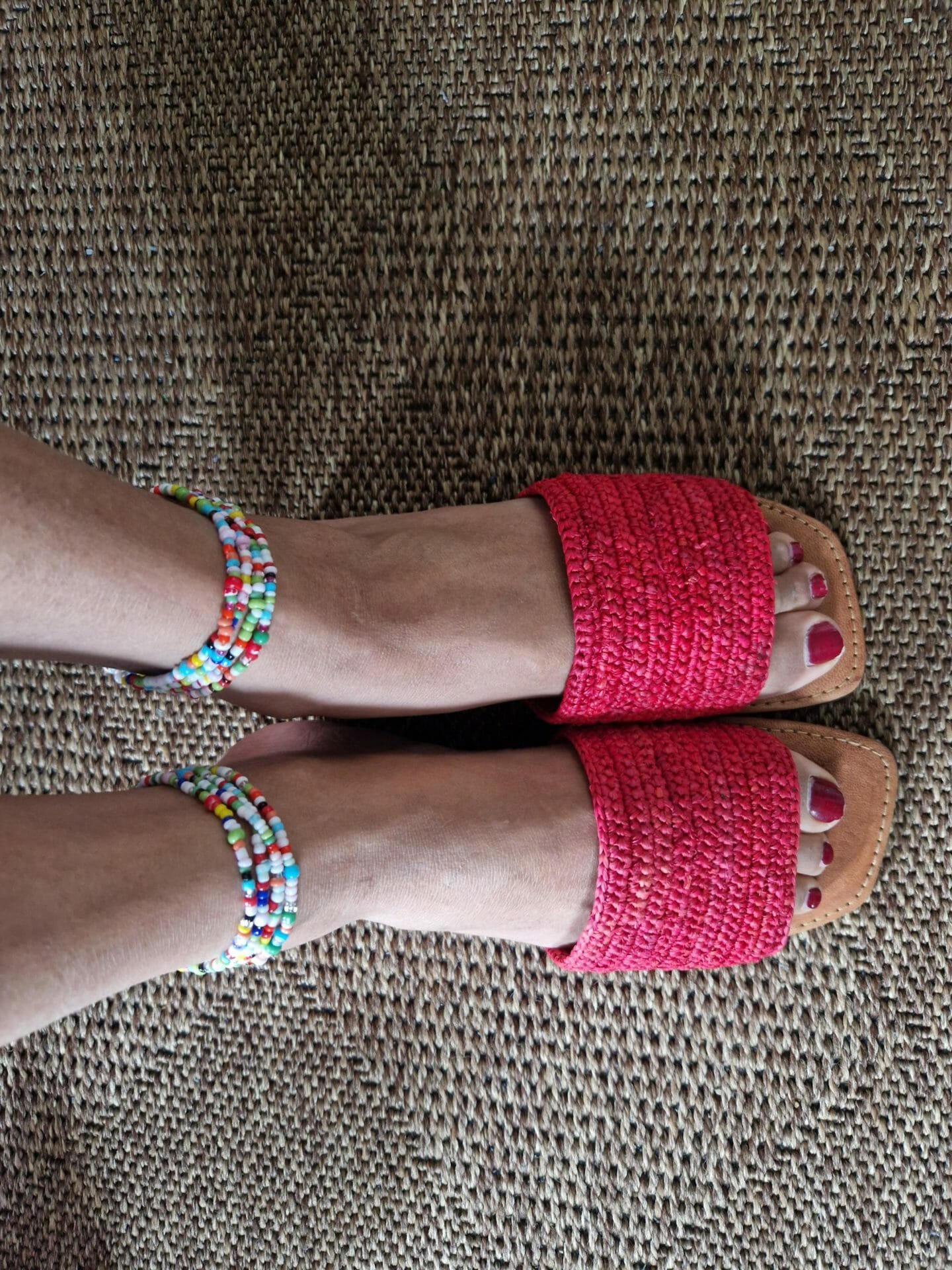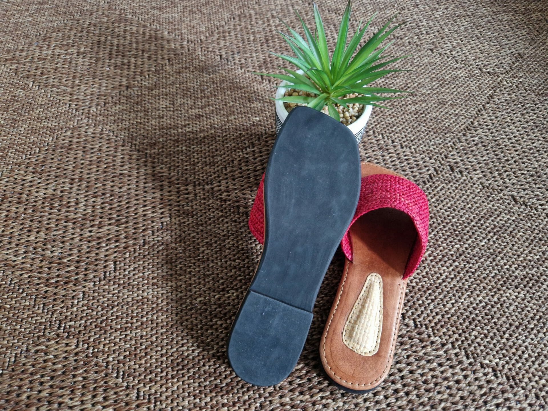 Sandale 100% artisanale en cuir et en raphia pour femme rouge pointure 38