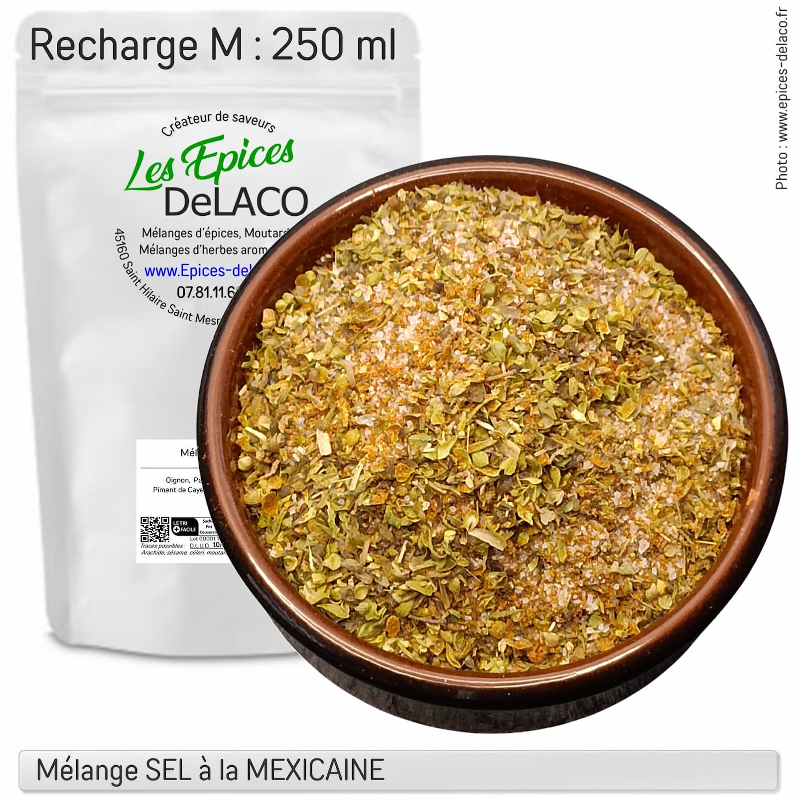 Notre mélange aromatisé Sel à la MEXICAINE est un mélange de sel de mer avec des épices et des herbes qui capturent les saveurs de la cuisine mexicaine. Il ajoute une explosion de saveurs authentiques et évoque l’ambiance culinaire du Mexique. Vous pouvez l’utiliser pour assaisonner des viandes blanches ou rouges, les poissons, grillés ou en sauce ainsi que les légumes, du riz, des haricots, des soupes, des salsas, et d’autres plats mexicains pour leur donner une saveur caractéristique de la cuisine mexicaine.