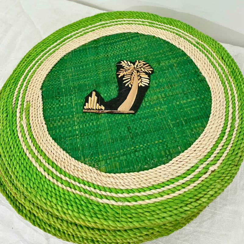 Set de Table en Raphia – Couleur Verte avec Dessin de Baobab