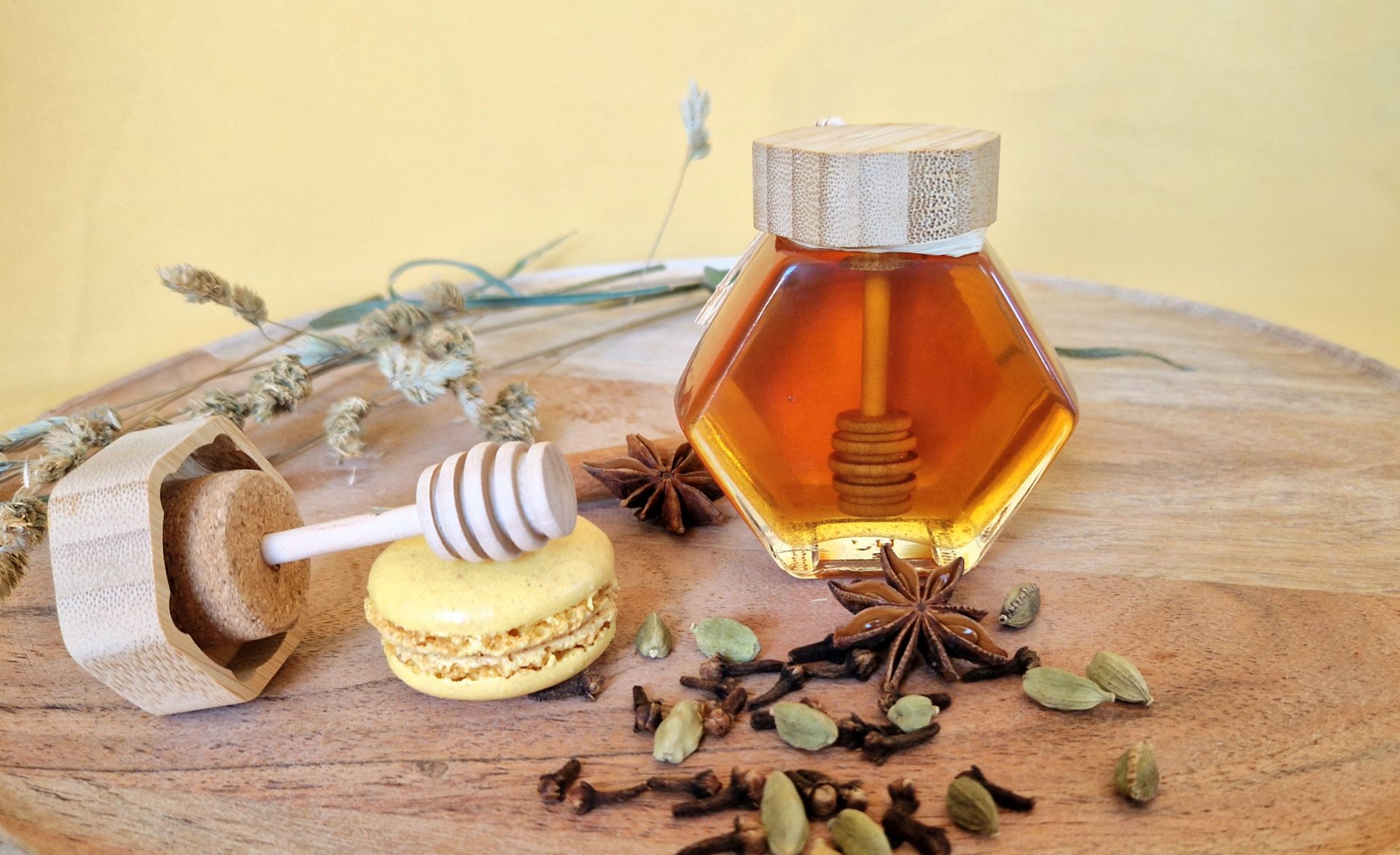 ⚠️ Miel en bocal Magique dont cuillère intégrée sur le couvercle en bois 🍯
